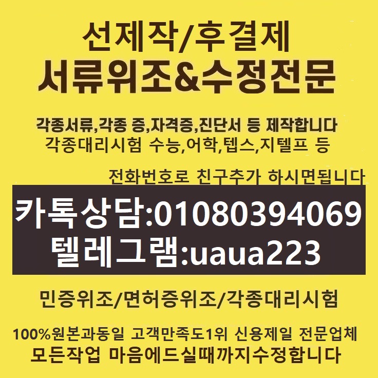 [제작위조]합격증명서제작=토익대리시험→톡상담친추+01080394069텔레uaua223학위증제작&학위증위조#토익대리시험&서류제작…